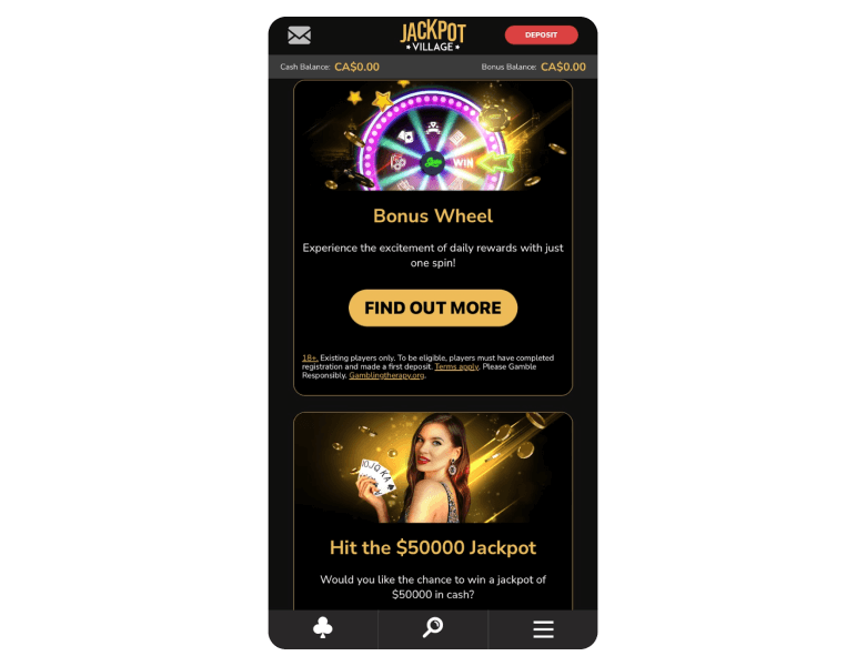 Besides the welcome offers, Jackpot Village Casino also has other promotions. Check out the “promotions” section in the menu to see availability. However, make sure to read their T&Cs before activating any bonuses and follow them afterward.
