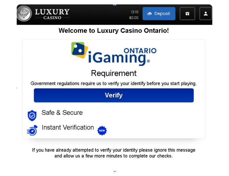 This casino requires you to verify your ID and location before you can make a deposit. Do it and deposit at least C$10.