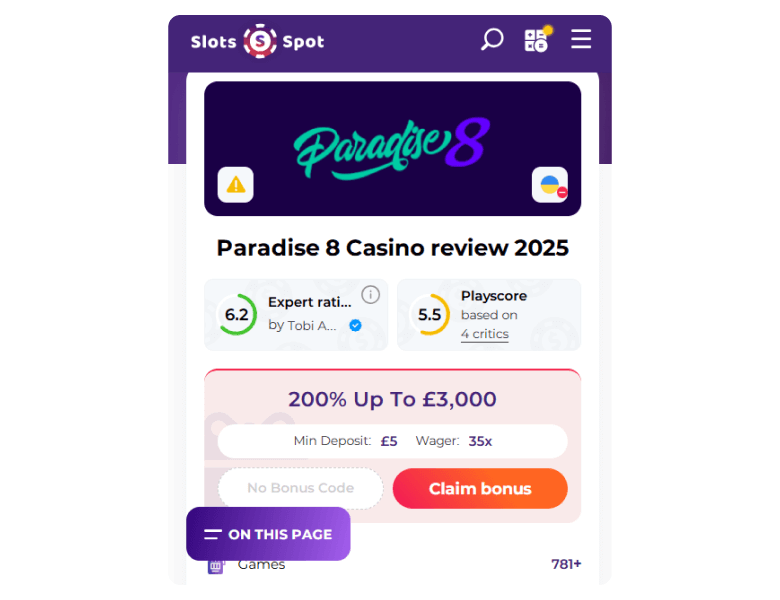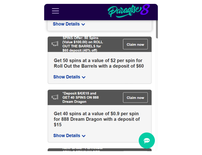 Paradise 8 Casino bonuses highlights and quick facts