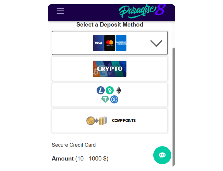 Deposit methods to receive bonuses at Paradise 8 Casino