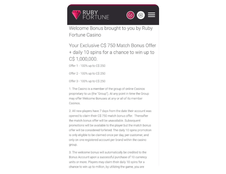 I recently decided to explore Ruby Fortune Casino, and I must mention that the welcome bonus is a solid way to kick things off. I made the $10 minimum deposit, and received a fair share of the 100% match. Just a heads up, though, the 35x wagering requirement has to be met in 7 days.