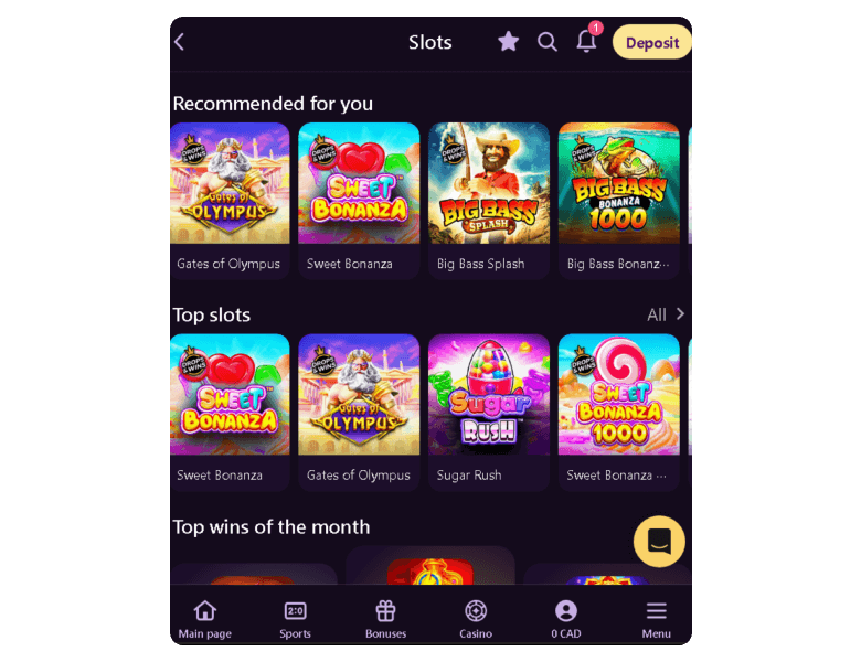 Out of all the bonuses, I liked the gamified setup the most. The bonus wheel triggered daily for a chance to win cash prizes, while the daily quests gave me free spins in return for completing various tasks, such as playing games, verifying my phone number or email, and others. The two reloads were also useful: they gave me 50% up to C$100 on Mondays and 35% up to C$100 daily.