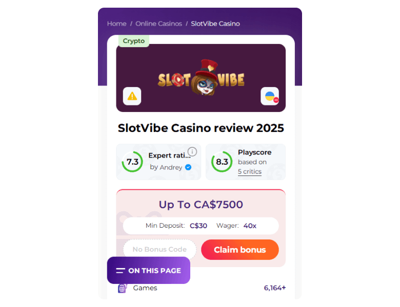 For a casino with crypto methods, I found it surprising that SlotVibe lacked a crypto bonus. Nevertheless, I thought their standard welcome bonus for Canadians was of good value — CA$2,500.