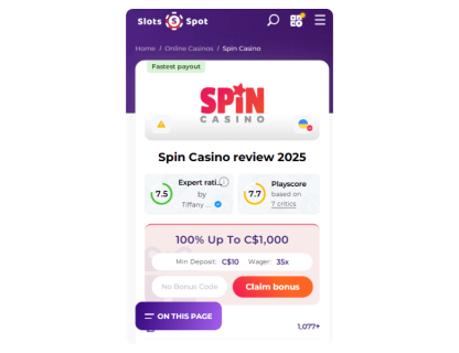 Spin Casino bonuses highlights and quick facts