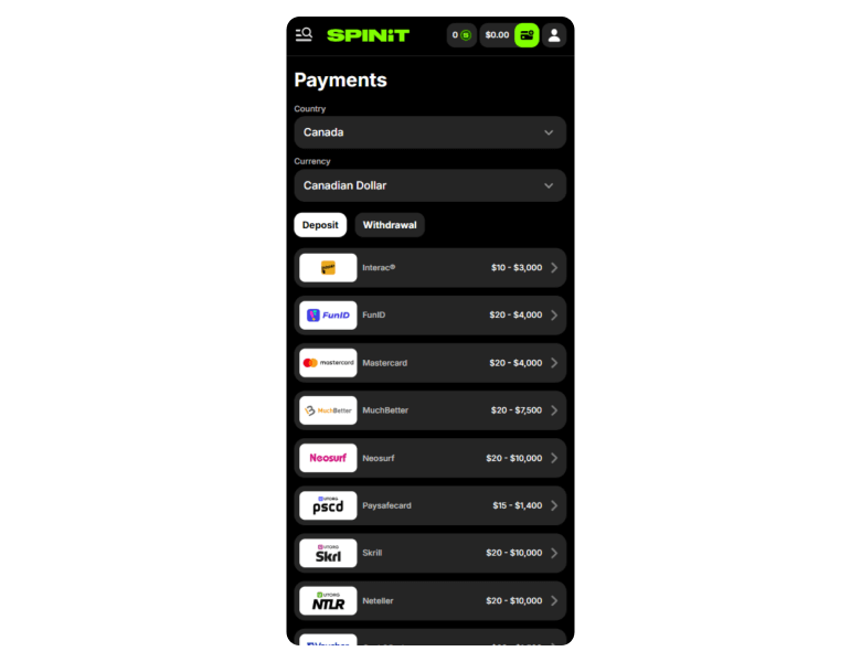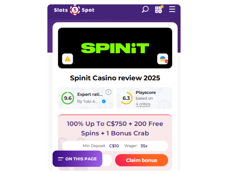 SpinIt Casino offers a welcome bonus of 100% up to C$750 with 200 free spins and a Bonus Crab feature, no bonus code needed. Ongoing promotions include weekly cashback, reload offers, and free spins for existing players. No deposit bonus is not available at the moment, and Skrill or Neteller deposits are excluded from bonus eligibility.