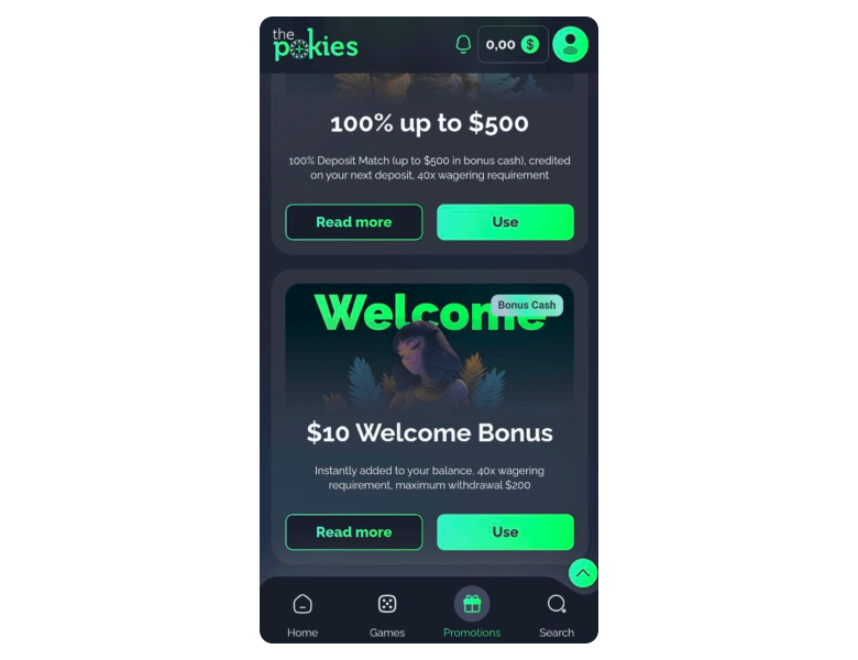 To activate bonuses and use them at The Pokies Casino, you need to follow these steps: