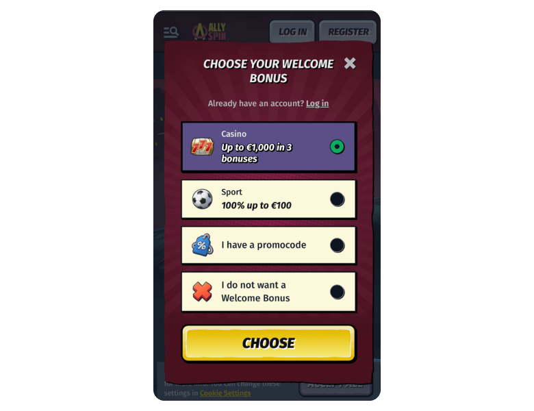The most popular games at AllySpin Casino are available in demo mode, so you can test them before playing with real money.