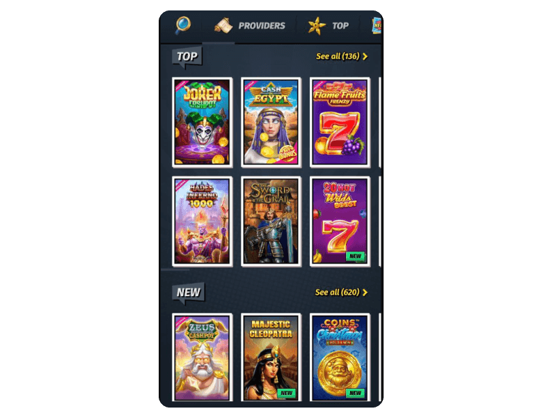 Only a sizable number of providers can make up the over 20,000 games on this site, so seeing 70+ of them was not surprising. I found big names like Playtech and Betsoft, alongside niche studios like Spribe and 777 Gaming.