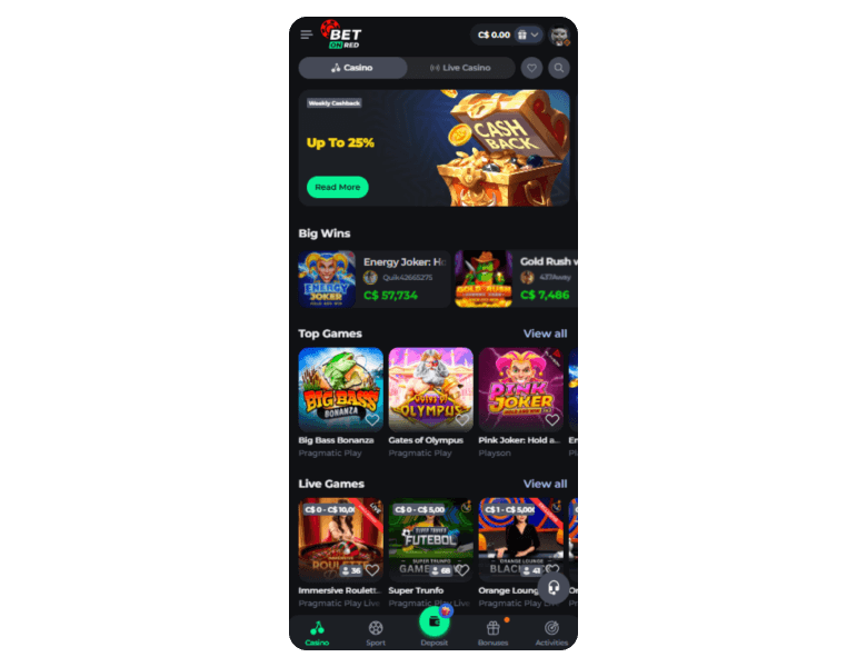Another Thing I like is that the game selection has around 5,592 games. I tested Pragmatic Play slots and Evolution’s live tables, and everything functioned without any issues. I deposited C$100 before receiving a 100-dollar bonus with 250 free spins. Next, the minimum deposit amount is only C$30 here. By the way, the minimum output size is C$50, and the max withdrawal is C$1,500.