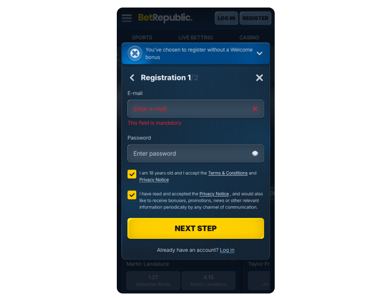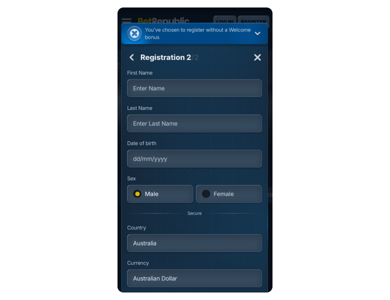Here comes a quick step-by-step guide on how to register at BetRepublic online casino in Australia and start playing in no time.