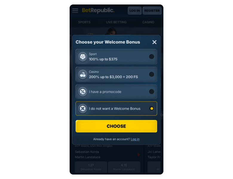 Claim BetRepublic’s welcome bonus