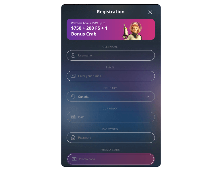 | Welcome Bonus | 100% up to C$750 + 200 Free Spins + 1 Bonus Crab | C$30 | 35x (deposit + bonus), 40x (free spin wins) | Not Required |