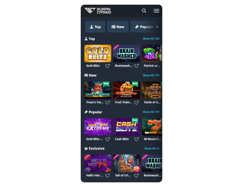 Buran didn’t mince with its collection of games, so the game library is stacked. Most of it is slots, but there’s more than enough for table game players and live casino regulars too.