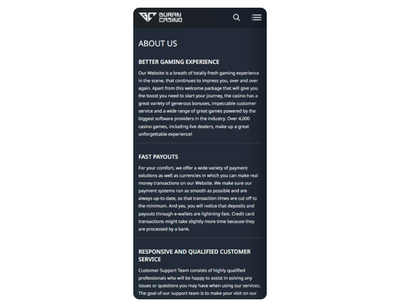 Mobile usability matters, especially when most people play on the go. In Buran’s case, everything works straight from the browser without issues.