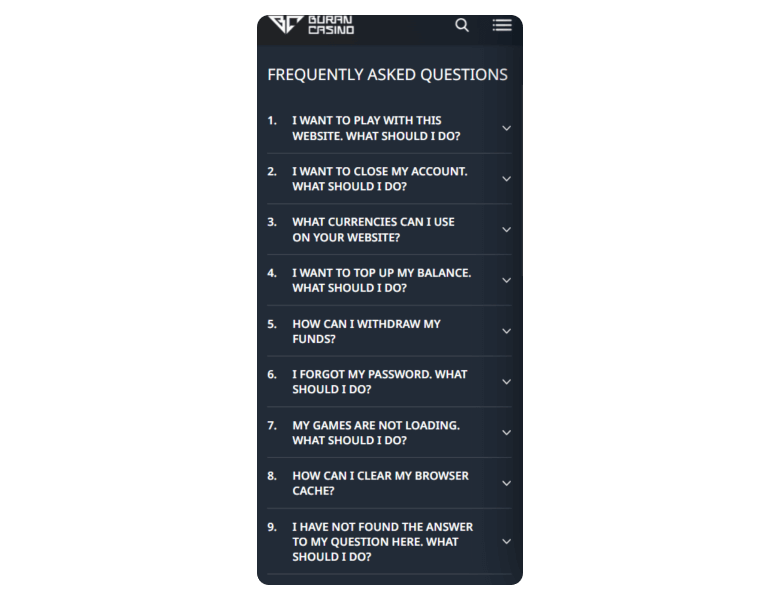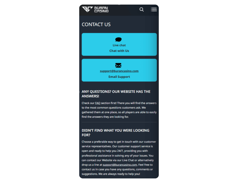 Use these links to access the necessary information about Buran Casino: