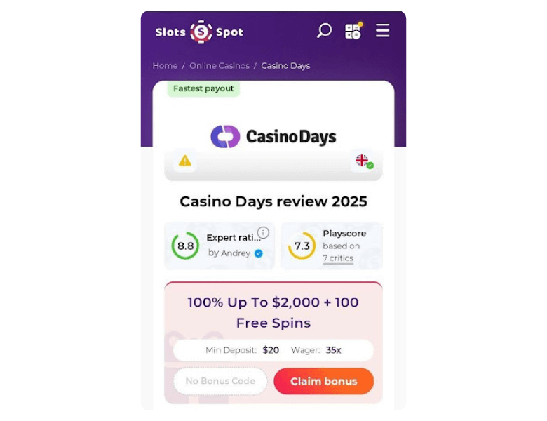 Casino Days has a large collection of games from trusted software providers, including live casino and crash games. It is a good option for players who like variety.
