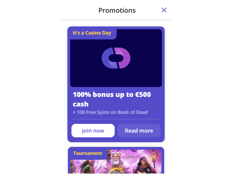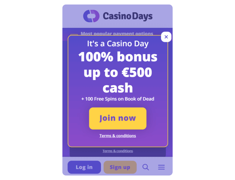 Casino Days has Android and iOS apps, offering all of the same games and features as are available on the main casino site. The app is available via the Google Play Store and Apple App Store.