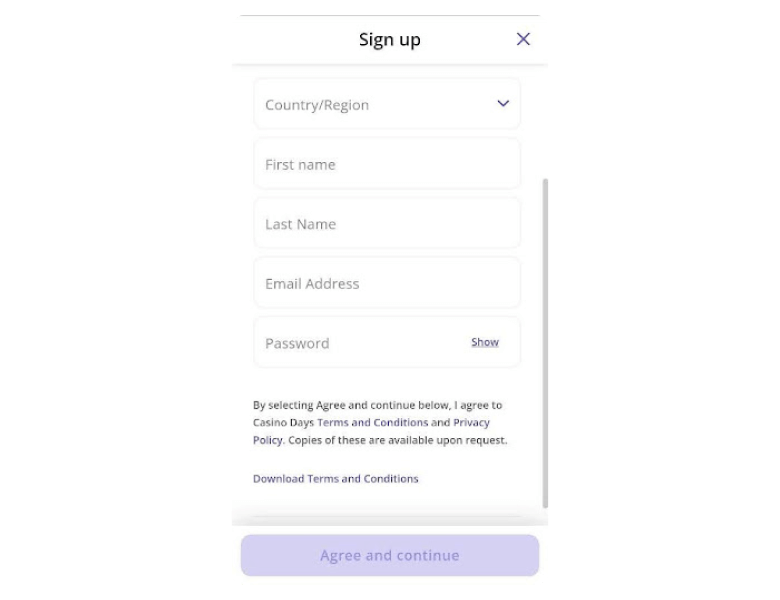 Registration at Casino Days is quick and easy. Below are the steps required for signing up.