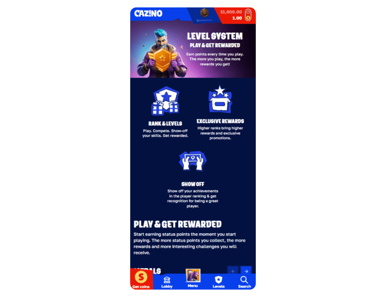 Cazino’s two-coin system feels easy to follow and fair for beginners. I liked that SC is earned, not bought, which keeps things compliant and transparent. The $100 redemption threshold is a bit steep, but the daily GC rewards and profile bonuses balance things out. It’s a solid setup that rewards consistent play without pressure.