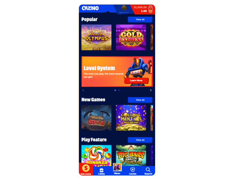 After joining Cazino, it gives players steady chances to play more and redeem prizes. New users get a mix of Gold Coins and Sweepstakes Coins just for signing up. Ongoing promos include daily credit reloads, jackpot access, and event-based offers like refer-a-friend and Mega Jackpot entries.