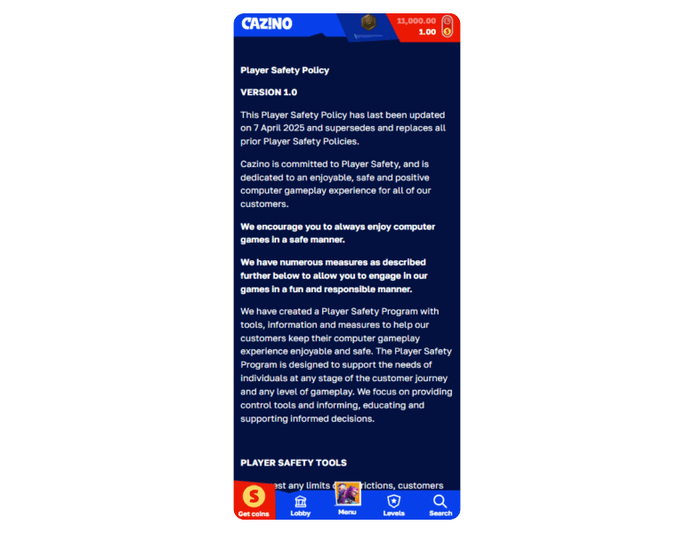 Cazino social gaming site uses standard verification and user protection tools to keep gameplay secure. While there’s no gaming license, the platform includes all major social casino safety features required for sweepstakes compliance.