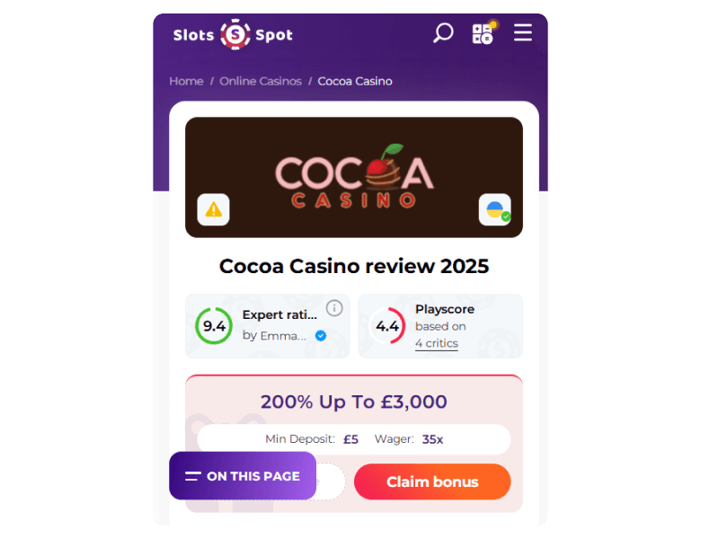 The casino is owned by SSC Entertainment N.V., the same operator behind other niche brands like Paradise 8 and This Is Vegas. That gives Cocoa a bit more credibility.