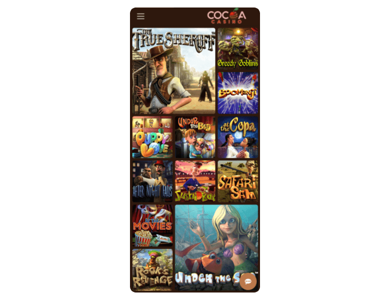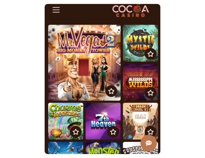 Even though there’s no app at the moment, mobile usability matters, especially when you play on the go. Cocoa keeps it simple with touch-friendly menus and large game tiles.