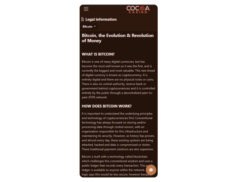 Cocoa doesn’t go above the standard here, but it doesn’t cut corners either. The Curacao license is common among crypto casinos, though it offers less player protection than MGA or UKGC.