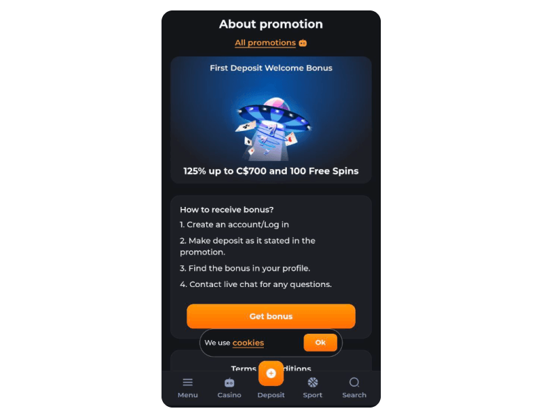 For the mode of operation, CosmicSlot operates as a casino and sportsbook. The casino options include slots, table games, and a live casino. On the other hand, sports lovers can bet on numerous markets, such as soccer, basketball, and tennis.