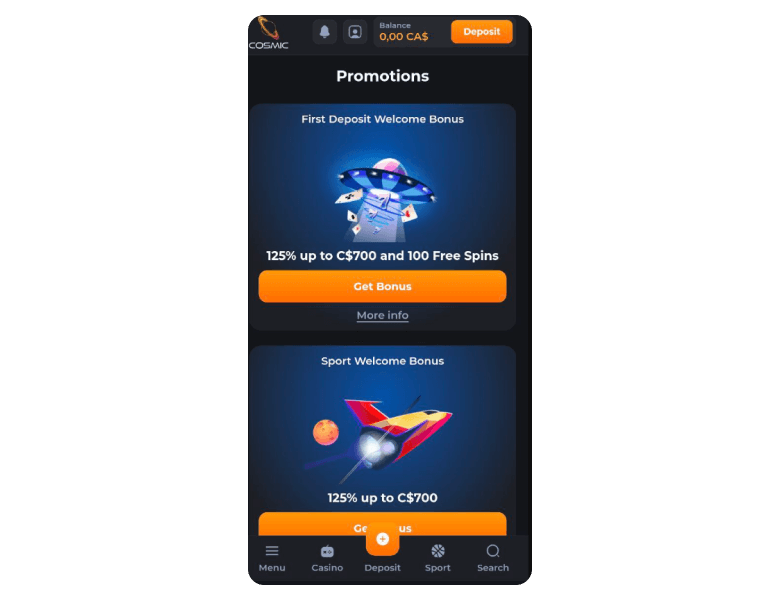 A flaw we discovered is CosmicSlot's lack of a mobile app. Nonetheless, it has a smartphone-responsive website. This version is identical to the PC version, with the exception of a few changes to accommodate the smaller screens on the devices.