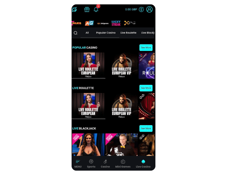 | Live Blackjack | 39 | Dragon tiger, Super Sic Bo |