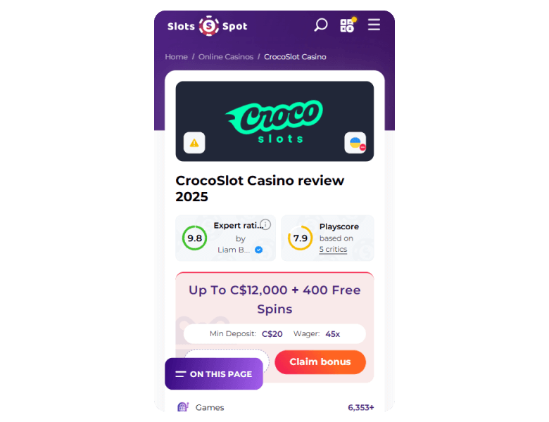 Review Disclosure: In this Crocoslots Casino review, I'm sharing my unbiased opinion after testing the casino’s features and overall player experience.