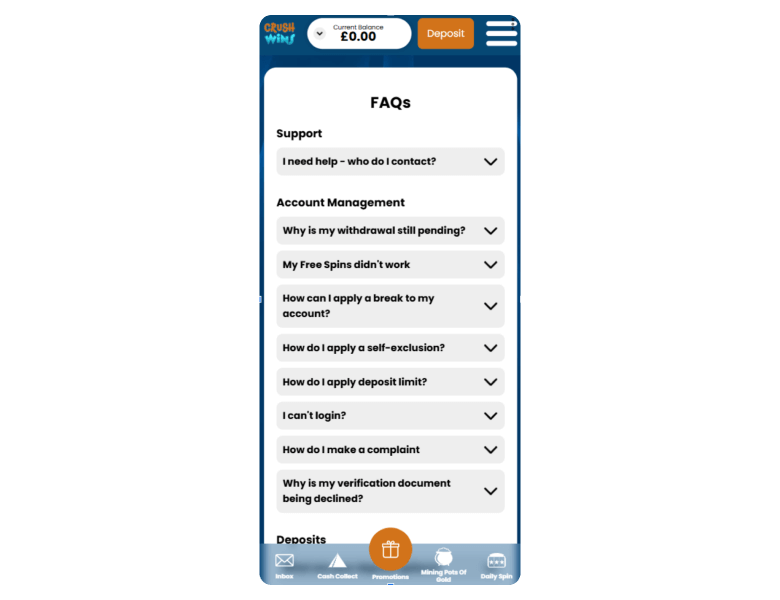 | Deposit methods | Deposit limits | Deposit time |