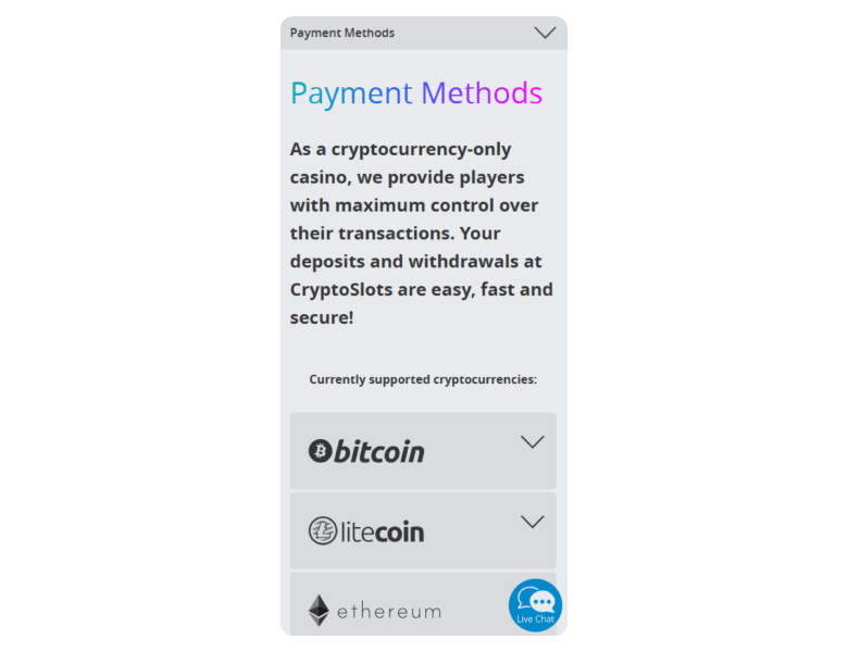 The registration procedure at Crypto Slots Casino was straightforward and took me less than 2 minutes. I provided my email, username, and password and was good to go after I verified my email. Like its name suggests, the casino is all about cryptocurrencies. I made my initial deposit of $25 using BTC, and it reflected instantly. The casino also accepts Litecoin, Monero, BTC, USD Coin, and Binance Coin for flexibility.