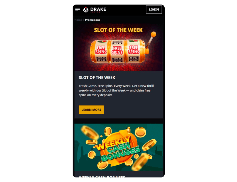 Drake Casino does not have a mobile casino app. Instead, you can play in the browser. The mobile version is actually quite similar to the desktop one, since it mirrors the same features, but when I was using it on my iPhone, I noticed slight delays when loading pages. Computer play definitely wins for me.