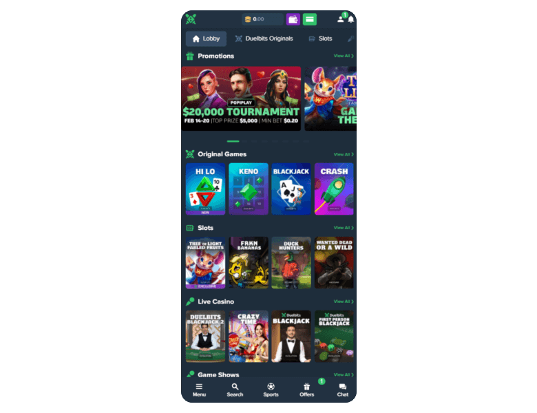 Summing up, Duelbits Casino has a large catalog of titles but does not provide new members and loyal clients with substantial rewards.