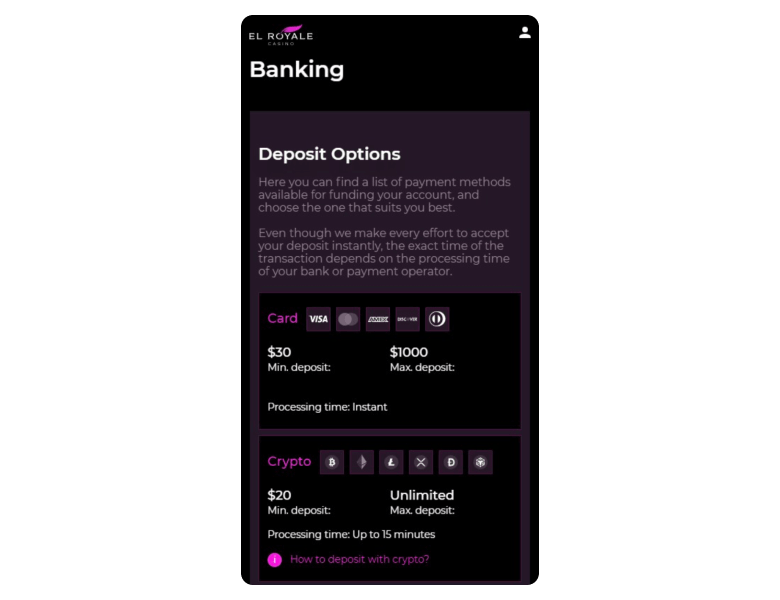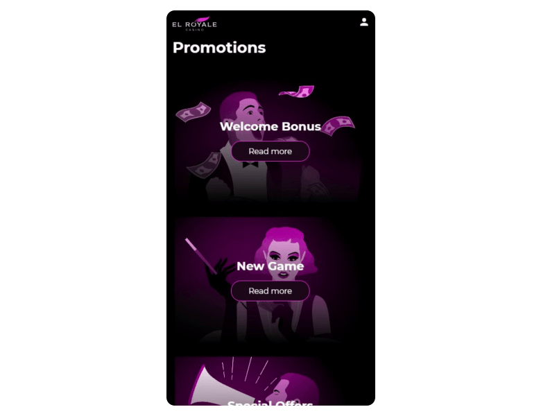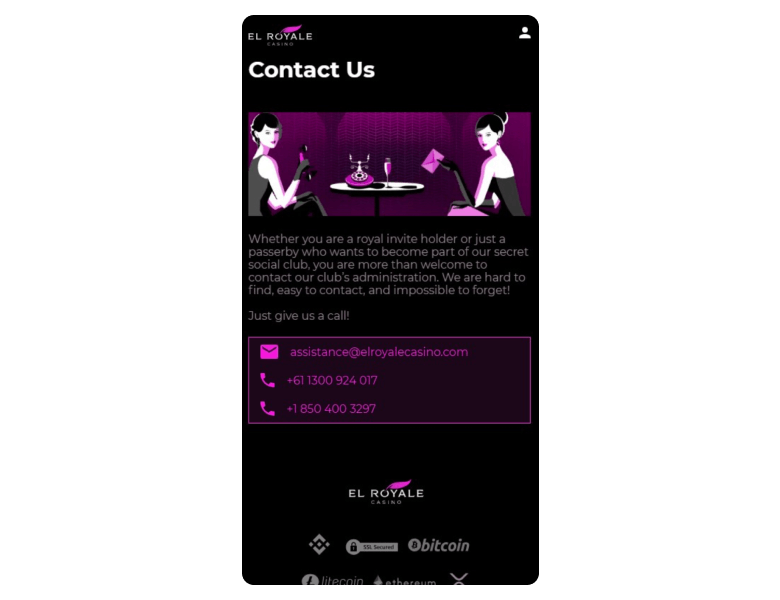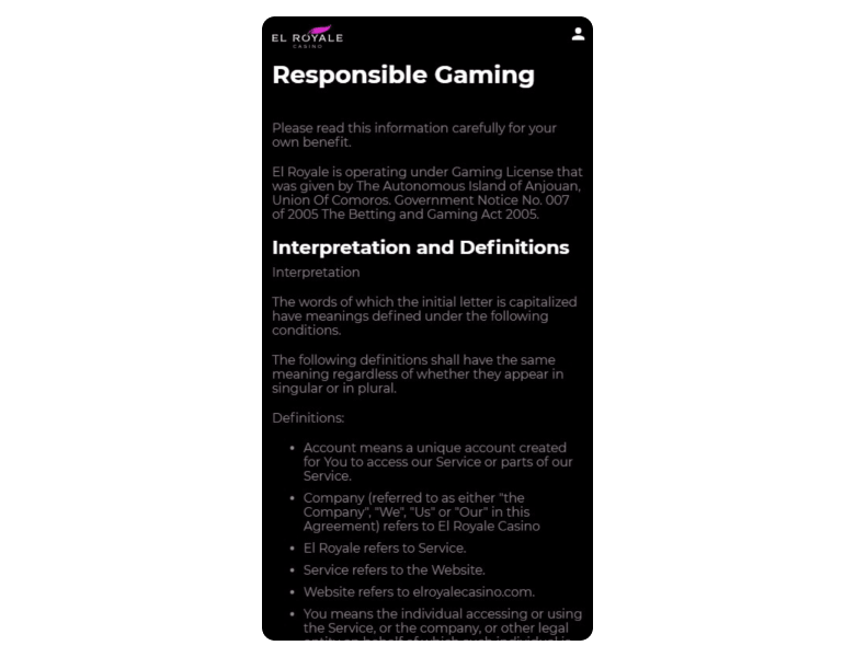 I used El Royale on my phone via browser because the platform has no app, just the mobile casino site. It loaded quickly over a standard 4G connection, and navigation is simple, though a bit basic. I didn't see smart filters or quick shortcuts, so finding something took a few extra taps. It is normal, but it lacks the polish you get with fully optimized mobile casino apps.