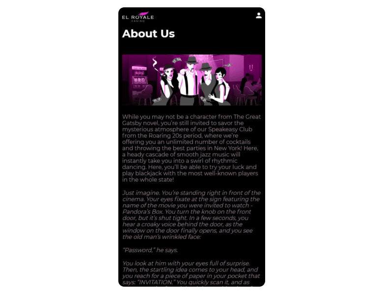 El Royale Casino is designed in a distinctive 1920s speakeasy style and combines classic and live-dealer titles within a stylized interface. It focuses on flexible banking, with support for traditional payment methods and cryptocurrencies.