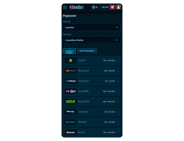 FamBet accommodates methods like Visa Card and Bitcoin. Regardless of your selected option, deposits are instant.