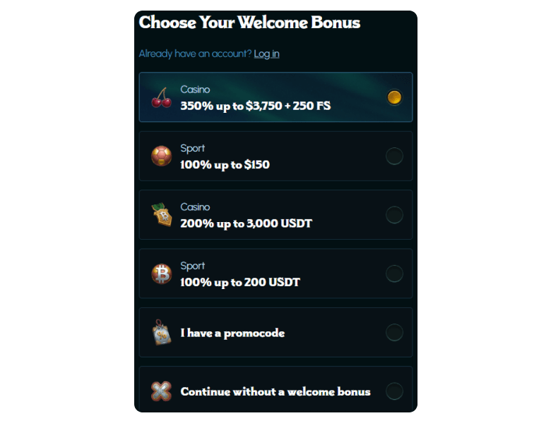 Bonus type | Best offer | Min. deposit | Wagering requirement | Bonus code |