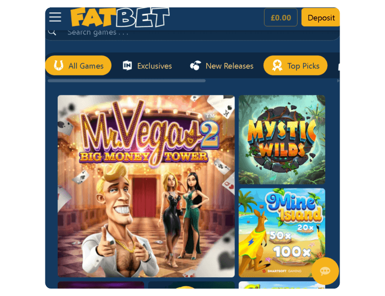 Fatbet doesn’t have the creative flair of Dunder casino for design, nor does it have the polished app of Cocoa Casino. But it does manage to work on both levels. The HTML5 mobile website uses an unembellished design, which works in favour of easy navigation and focused gaming.
