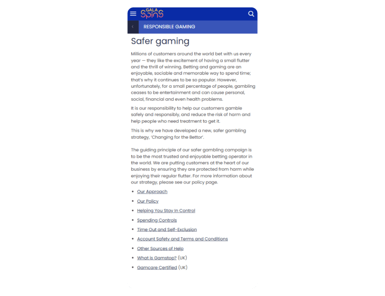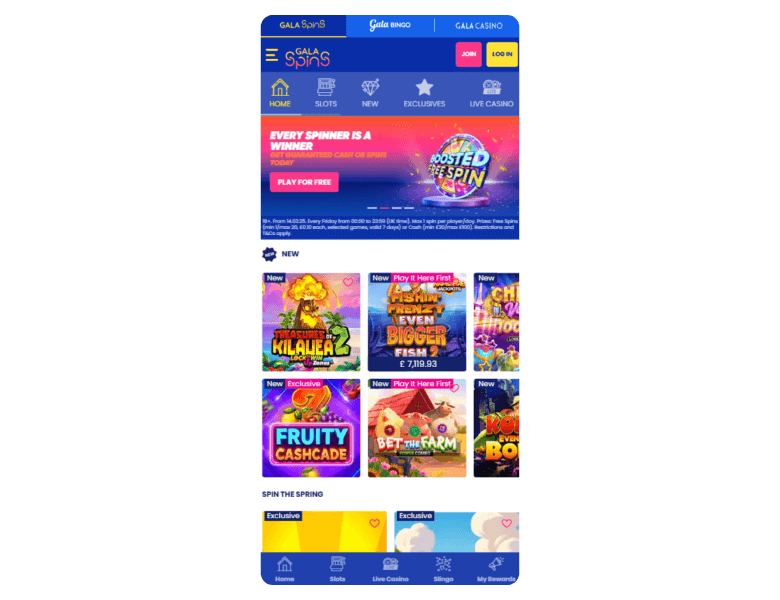 Screenshot of the main sections of the casino website: