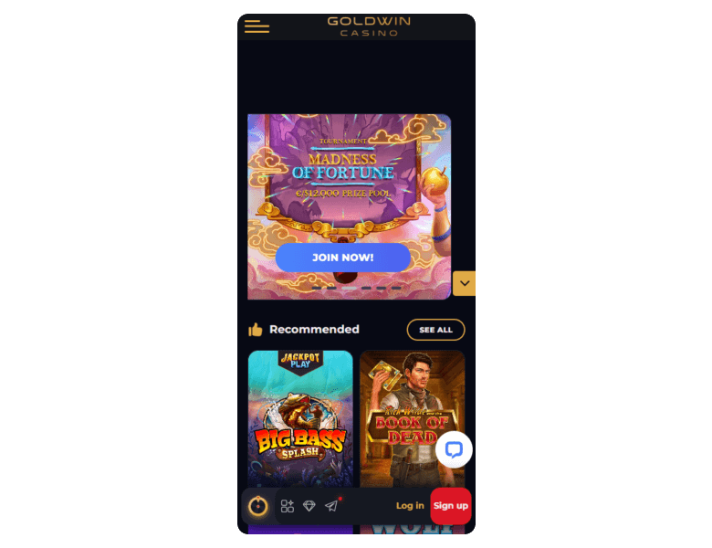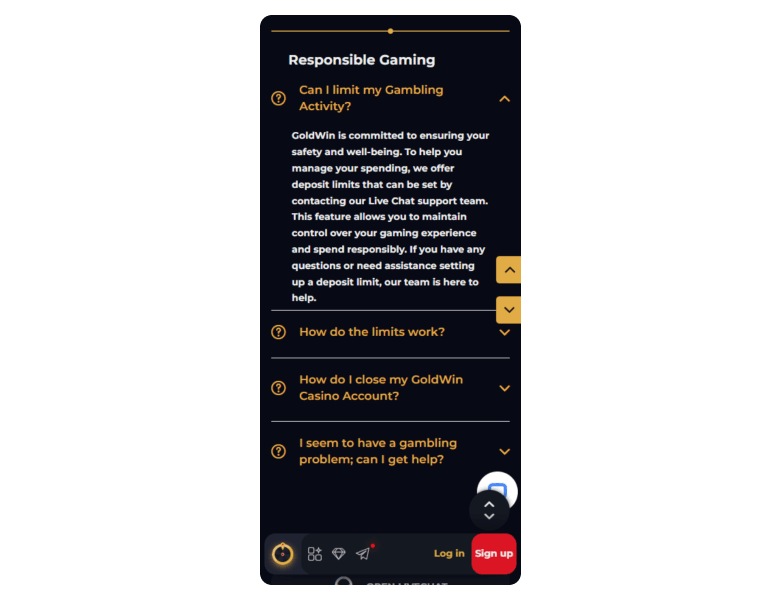 Goldwin Casino operates under a Curacao license and features basic player protection tools, like financial limits and timeout options.