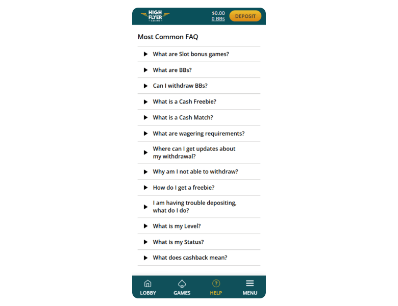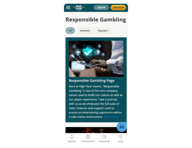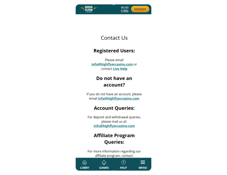 Screenshot of the main sections of the casino website: