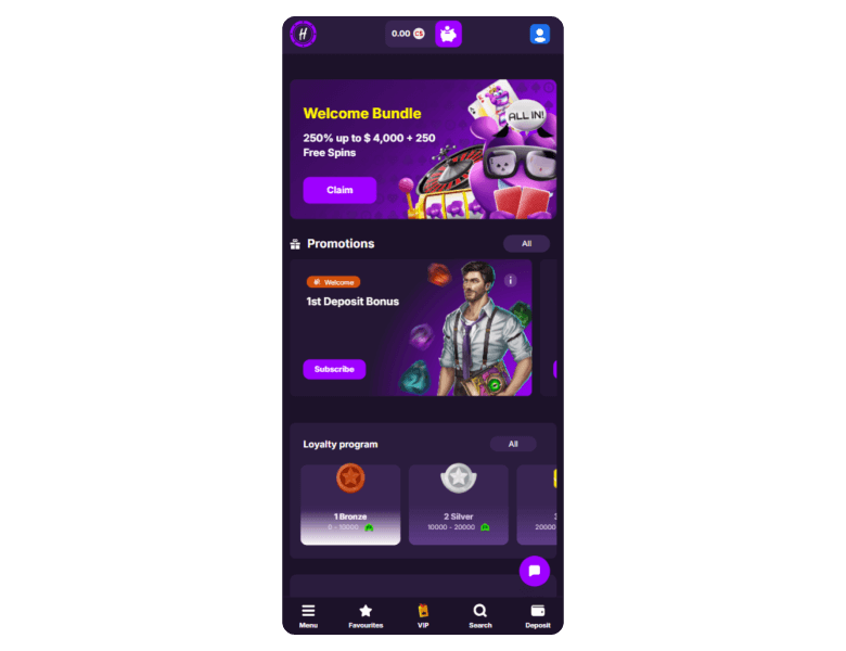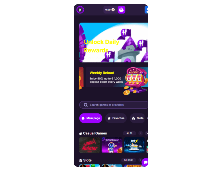 At HitMe, you get started on a high with a large welcome package full of spins. Rewards continue beyond and include cashback, daily rewards, and a VIP programme.