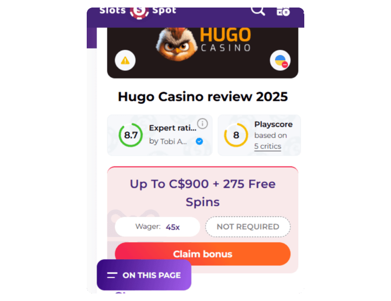 Review Disclosure: This review is based on my firsthand assessments of Hugo Casino's bonuses, games, and overall features after testing them extensively.