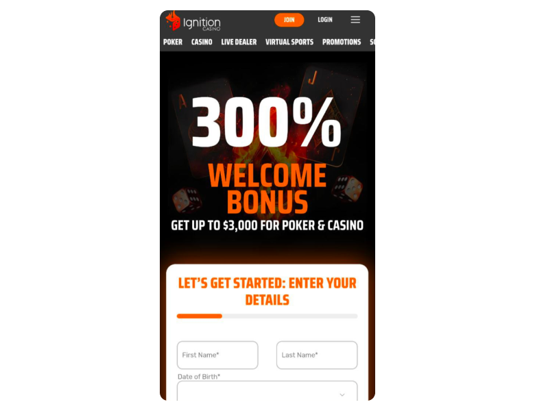 Registering at Ignition Casino and receiving your first bonus takes just a few minutes: