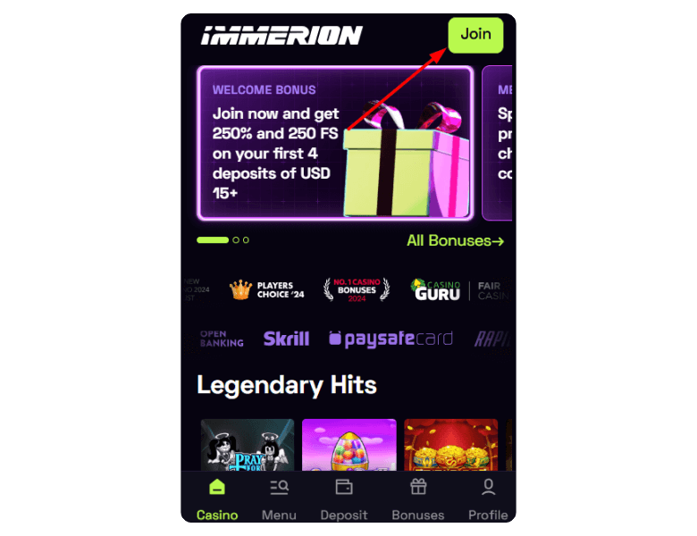 Getting started at Immerion Casino takes less than two minutes. Follow these steps to register, claim your bonus, and start playing.
