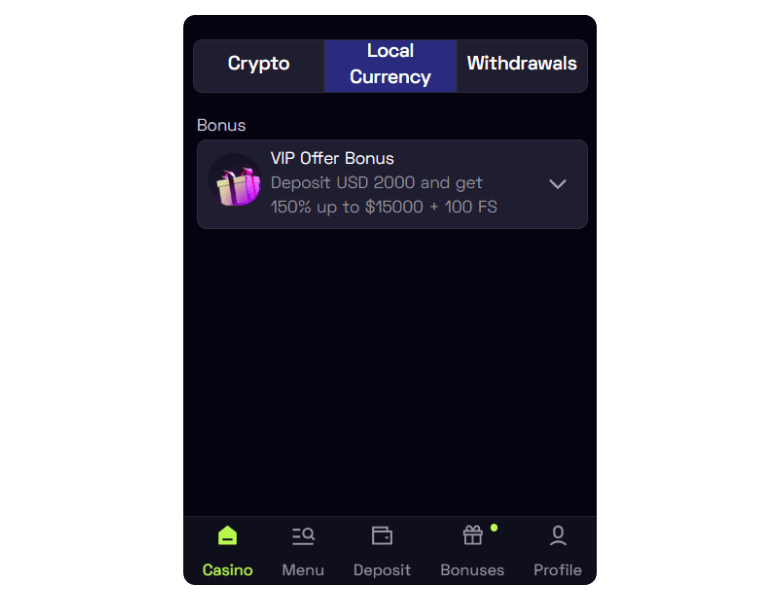 While Immerion doesn’t include extras like sports betting or bingo, it focuses fully on casino gaming with 8,900+ titles and full crypto support. That keeps the platform sharp and specialized.