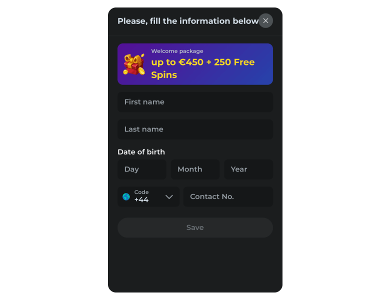 | Welcome Bonus | Up To £450 + 250 Free Spins | £20 | 30x | Not Required |